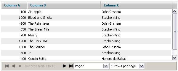 If none of built-in skins suits user needs, a custom one can be easily created. Basically, some custom code can be attached to events of the grid, but paging provides more simple way to define custom skins. Just define a grid method with the name: