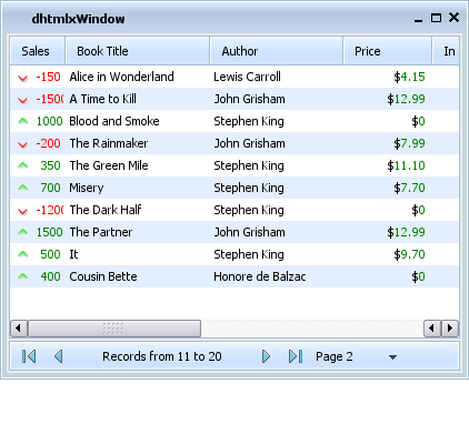 To use “bricks” paging skin the user have to include dhtmlxgrid_pgn_bricks.css file.