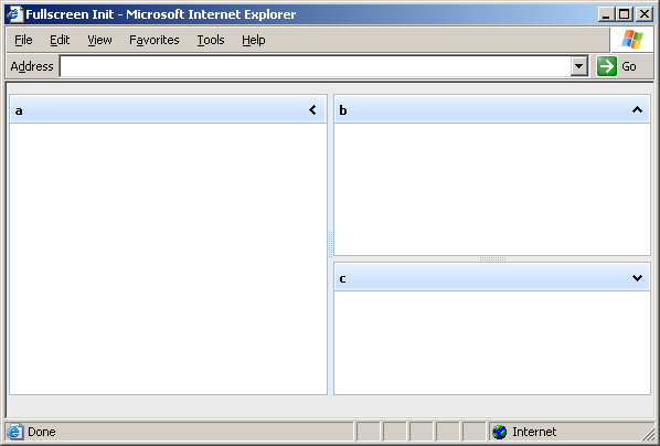 <head> <title>Marings Demo</title> <link rel="stylesheet" type="text/css" href="codebase/dhtmlxlayout.css"> <link rel="stylesheet" type="text/css" href="codebase/skins/dhtmlxlayout_dhx_skyblue.css"> <script src="codebase/dhtmlxcommon.js"></script> <script src="codebase/dhtmlxcontainer.js"></script> <script src="codebase/dhtmlxlayout.js"></script> <style> html, body { width: 100%; height: 100%; margin: 0px; padding: 0px; overflow: hidden; } </style> </head> <body onload="doOnLoad();"> <script> var dhxLayout; function doOnLoad() { dhxLayout = new dhtmlXLayoutObject(document.body, "3L"); dhxLayout.cont.obj._offsetTop = 10; dhxLayout.cont.obj._offsetHeight = -30; dhxLayout.setSizes(); } </script> </body> </html>